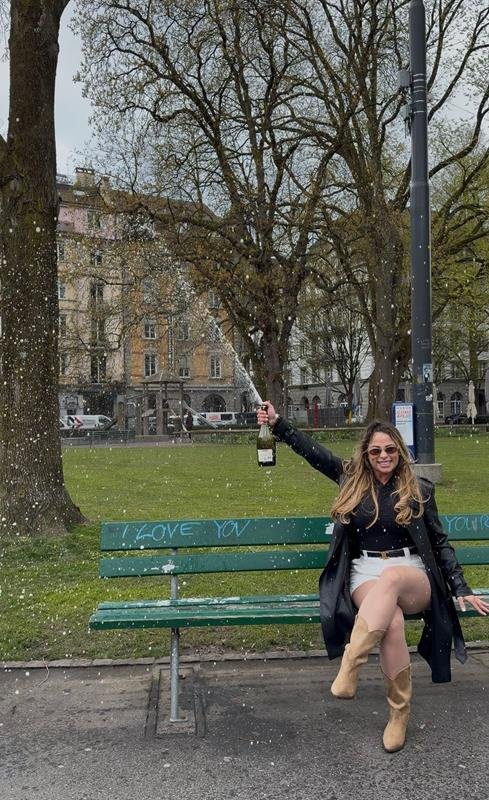 Sempre conectada às tendências, ela também aproveitou o momento para gravar conteúdos especiais, incluindo a famosa “trend do champanhe”, reforçando sua presença digital com elegância e autenticidade.