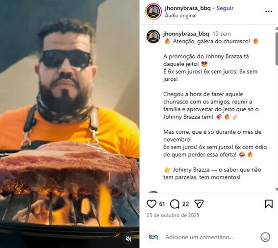 No perfil @jhonnybrasa_bbq, Jhony utiliza a comunicação digital como vitrine de sua paixão. Ali, seguidores encontram não apenas receitas e técnicas, mas também histórias, bastidores e a autenticidade de um profissional que vive intensamente o que faz.
